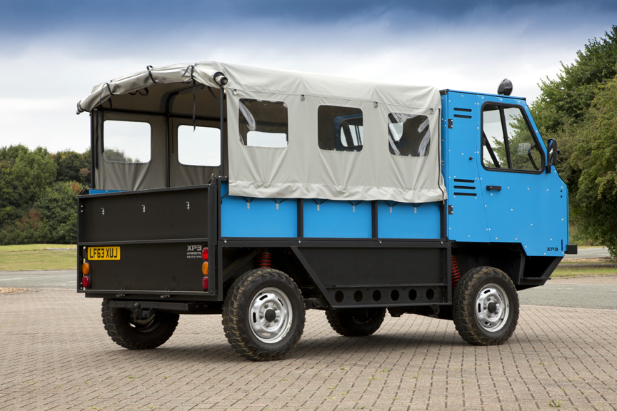 The OX has been designed to offer superb all-terrain ability, but it also has a huge and adaptable load carrying capability. The packaging is a key triumph of the OX project: the overall vehicle length is far shorter than a large SUV, and yet it can carry a payload of 1900kg (approximately twice the capacity of most current pick-ups) with a load volume of 7.0 m3. Based on EU size guidelines, it can seat up to 13 people or carry eight 44-gallon drums or three Euro-pallets.