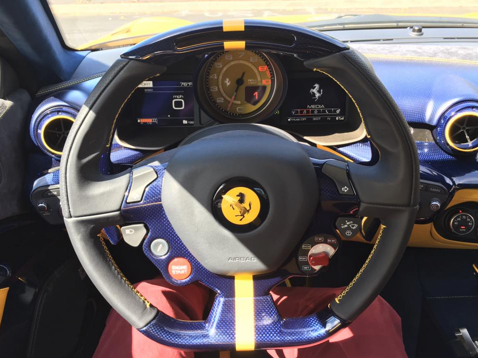 The 6.3 liter V-12 has a horn section. It blares, blasts, plays notes and talks to you with aural feedback like only a Ferrari V-12 can. The brass section changes tunes depending upon the gear and throttle position. Rated at 769hp at 8500rpm, up from 730hp in the Berlinetta. The torque peak is 519lb-ft. at 6250rpm but 80% of that available from 2500rpm and the redline is 8900 rpm. The power builds in a linear rush with no dead spot or lacking under a particular rpm, a rheostat connected to the foot similar to the wife's LaFerrari. And as he says, it is a front engine LaFerrari, albeit noticeably slower. Well slower to him.