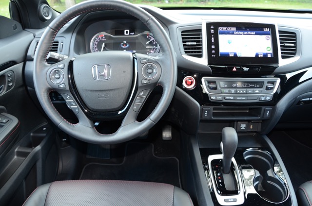 Behind the wheel I would have thought I was driving a midsize SUV, if I didn’t know there was pickup bed following me. Drivetrain noise is well managed as is wind and tire noise. The Black model is fully loaded so I got to enjoy many convenience and top-line features. My usual nitpick on all current Honda models is the lack of volume and tuning knobs for the audio system.