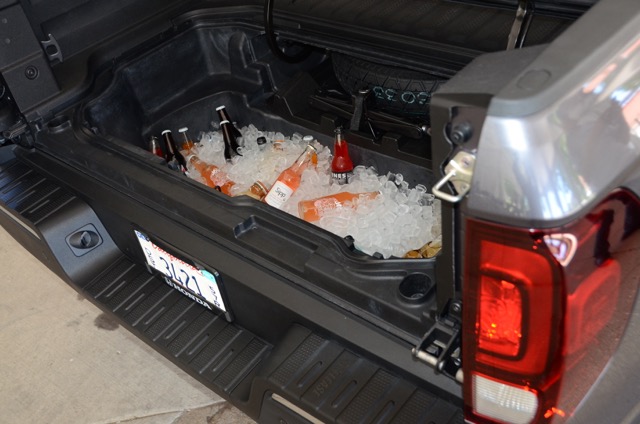 The Ridgeline uses the same architecture as the Pilot and Acura MDX and looks a lot like the Pilot from the front as well as in the cabin. The all-important pickup bed continues with the world’s first and only dual-action (fold or swing) tailgate. The bed has minimal wheel arch humps and is the only truck in the market that allows a 4ft. X 8 ft. sheet of plywood to lay flat. There’s also an in-bed lockable trunk. This trunk, by the way, also makes a great place to hold iced-down beverages when tailgating at your favorite football game.
