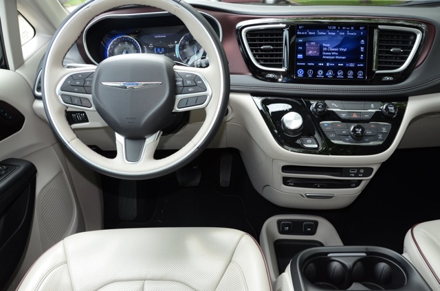 I had a week to play around and learn about the Pacifica in a Limited model with a base price of $42,495. A $995 Tire and Wheel package added 20-inch wheels shod with 245/50 all-season tires. And for $1,995 a Uconnect Theatre Package provided the all-important child-entertaining video package with headrest screens, wireless headphones and video remote plus the associated Blu-Ray/DVD player and various USB and video ports. All totaled up the bottom line hit $46,480.