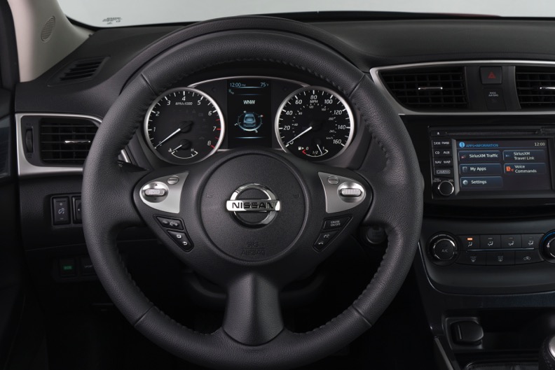 Already Sentra SR offers soft touch surfaces on the instrument panel and door armrests, an intelligent key fob with keyless entry, and a rear view monitor. Other upscale features like premium sport cloth seats, heated front seats and a 5” Driver Information Display add to value. For instance look at the steering wheel, it has botique-ish aluminum escutcheons as well as inset buttons for the wheel-mounted controls.