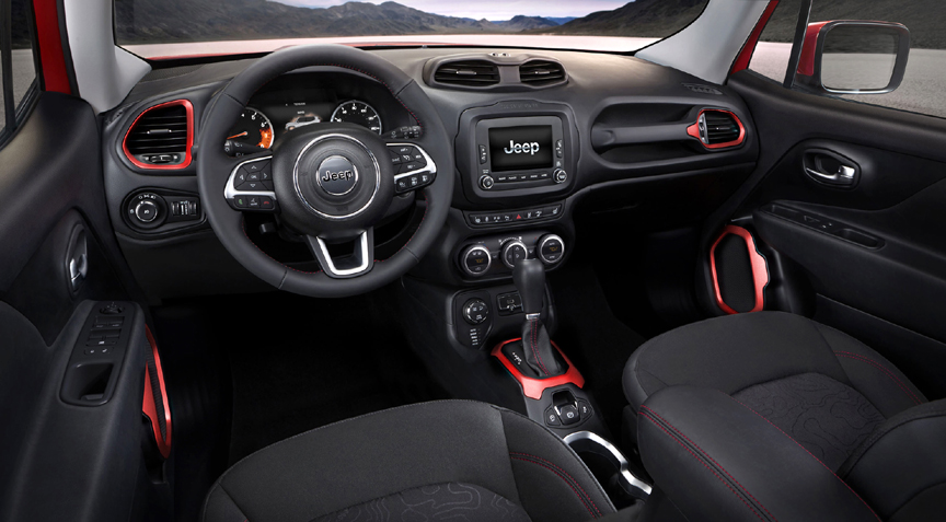 SAFETY: The Jeep Renegade’s unibody structure is designed to protect passengers with controlled deformation in the event of an accident. A full complement of airbags add further protection, while good handling characteristics, antilock brakes with electronic brake-force distribution, electronic stability control, and electronic roll mitigation systems add active safety. Lane-departure warning, blind-spot and rear cross-traffic detection, ultrasonic rear obstacle detection, and rear-vision camera systems are standard or available depending on model.