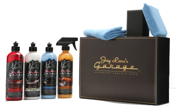 BURBANK, Calif.—Legendary comedian, world-renowned car guy and former host of the Tonight Show, Jay Leno is expanding today into the world of automotive care in a significant way with the launch of his brand, Jay Leno’s Garage – Advanced Vehicle Care. Inspired by the iconic style, standards, and identity of Leno and his ever-expanding collection of automobiles and motorcycles, the brand will include products that are used on his cars and have helped him win multiple Concours-Level car show awards.