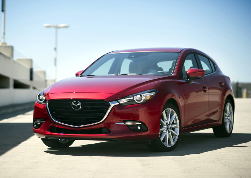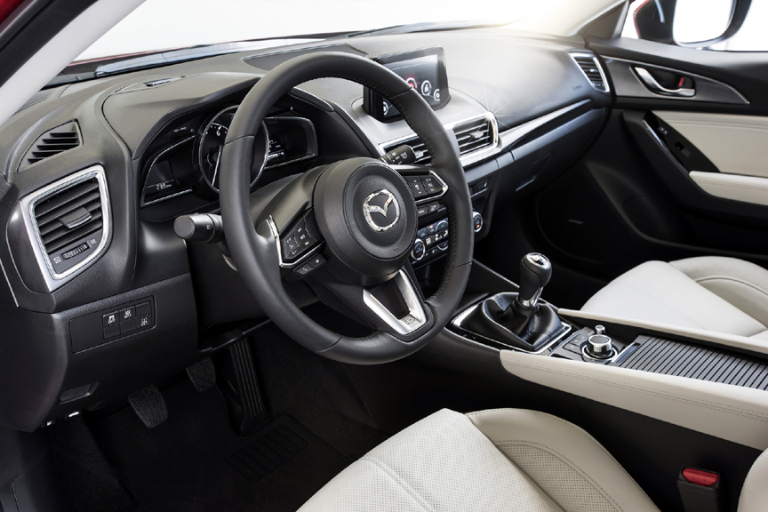 Mazda's popular Mazda3 compact hatchback and sedan get a mid-product cycle freshening for 2017, with subtle changes to the exterior, interior, and chassis, more standard and optional safety technology, a nd the usual changes to color choices. The previous “i” and “s” model designations denoting engine choice — 2.0-liter, 155 horsepower and 2.5-liter 184-hp respectively — are history. If both engines are available in a model, examples with the 2.5 are called “2.5”, while those with the 2.0 are unadorned.