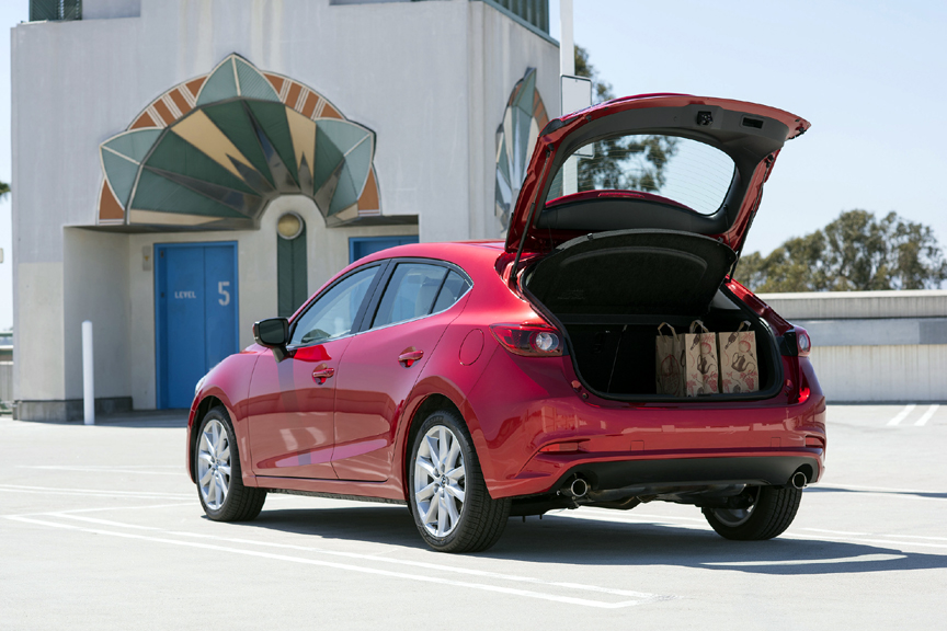 As is the case with some competitors, the five-door (four passenger doors plus the hatch) hatchback is positioned upscale to the sedan. Models are Sport (2.0 engine), Touring (both engines), and Grand Touring (2.5 only). Touring models all have a six-speed multi-mode automatic as their only transmission choice, while Sport and Grand Touring versions can also be had with a six-speed manual. Most manufacturers who offer a stick today offer it only in the base model. Not Mazda. But then, Mazda is definitely not “most manufacturers”…