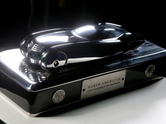 But the multiple wins also extend to non-vehicle highlights. For the first time there is a tangible prize that winners can use for bragging rights, rather like an automotive version of the famed Oscar statuette synonymous with Hollywood's Academy Awards for motion pictures. The weighty, sleek, silver colored trophy was the vision of Ed Welburn, who retired last June as General Motors Company's design vice president.