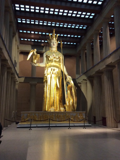 Another element of the soul of Nashville revolves around cultural themes – not just a mid-south country theme, but a cosmopolitan, multi-faceted, aesthetic theme. Around the turn of the 20th century the city was known as the Athens of the South. An huge, pull-out-all-the-stops centennial exposition in 1897 included a full-size replica of the Greek Parthenon to support that image. It survives today and houses a remarkable art museum as well as a 30-foot high statue of Athena. We found another fine art museum at the Cheekwood Mansion and Botanical Gardens where an impressive holiday light display (a million lights, they claim) cover the 55-acre grounds.
