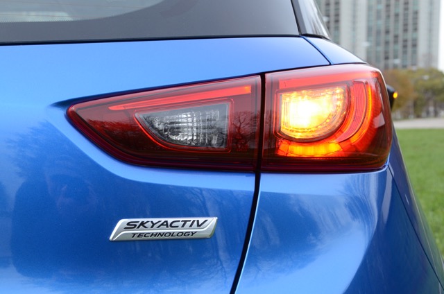 The CX-3 has a 2.0-L 146 HP engine mated to a 6-speed automatic. We were driving a Grand Touring trim level with all-wheel-drive, which I was pleased we had just in case November threw a Thanksgiving blast of snow at us.