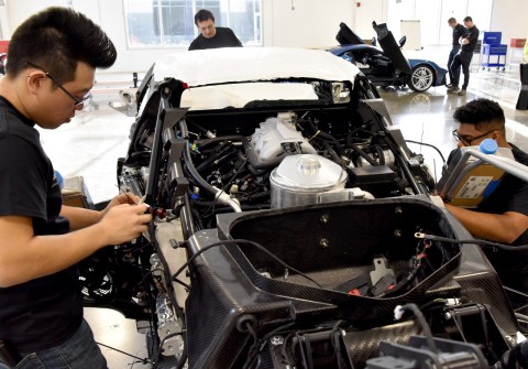 In this new, low-volume assembly facility at Multimatic in Markham, Ontario, Raj Nair, Ford executive vice president, global product development, and chief technical officer, marked today’s milestone by driving a Ford GT off the assembly line.
