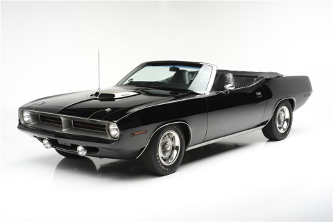 Among the most coveted and rare of muscle cars is a ’70 Plymouth HEMI ’Cuda Convertible (Lot #1392), which is only one of 14 built. Enhanced by its color combination of triple black, this ’Cuda has a rich racing pedigree, including national records for ET and mph in NHRA and IHRA, as well as the SS Eliminator title at the 1973 U.S. Nationals in Indy. It was owned by Hall of Famer Steve Bagwell and driven by Hall of Famer Terry Earwood.