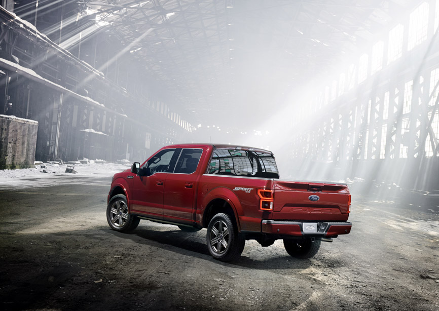 The 2018 F-150 lineup is new with even tougher looks. From XL to top-of-the-line Limited, all Ford F-150 models receive new grilles, headlamps and bumpers that create a visually wider and more planted stance and maximum differentiation between the series. On the Sport Package-equipped Lariat F-150, the signature twin bars are painted body color for a custom athletic appearance.
