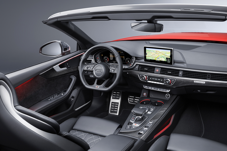 • New for 2018, all A5 and S5 Cabriolet models come standard equipped with safety belt microphones and a one-touch opening function for the soft top