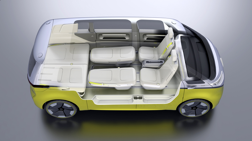 The “I.D. BUZZ” name was hardly an arbitrary choice. I.D. stands for “Identity,” “Idea,” “Individual,” “Intelligent” and “Iconic Design”. BUZZ, on the other hand, is a phonetic word play on “bus” and refers to the silent “buzzing” of the drive system.
