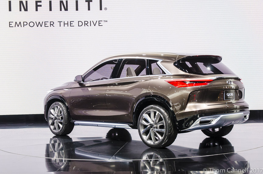 Nissan, as a company, had the most introductions as its premium Infiniti brought the all-new Qx50 Concept rife with next-generation technology aimed at fully autonomous driving. Admittedly the QX50 is production intent with its “cabin forward” silhouette and high profile hood line. A focus on interiors shows Infiniti’s increasing focus on exceeding Lexus and Mercedes in Luxury; three different leathers flow throughout the cabin. More important, the powertrain features Nissan’s award winning variable compression engine, an industry first. The engine will make its debut in model year 2018.