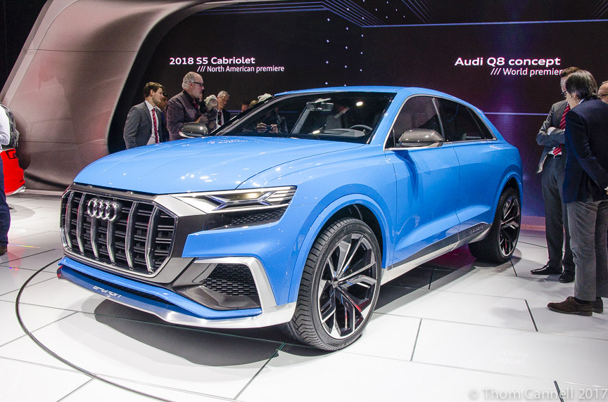 The Germans made some news as well with Audi showing cabriolet versions of the S5 and A5 with acoustic soft top and the SQ5, a serious sport version of the Q5. Most flashy was the Q8 Concept showing a new, more complex design direction for the normally conservative brand. As you might guess with Audi, it is loaded to the hilt with tech. Audi’s president of the Americas, Scott Keogh, called this past year “challenging,” referring, we assume, to the diesel cheating scandal in which they got caught up with along with VW.