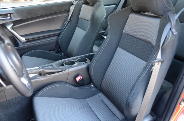 There’s an optional navigation system, and a Pioneer audio system with knobs, buttons and eight-speakers. And, the HVAC is easy to manage with three knobs. There’s keyless entry for the doors and trunk but you need to insert and twist the key to start the engine. The 86 is simply a get in and drive car. The 2+2 seating makes for some rear storage and the 6.9 cuft trunk is OK for two person’s luggage or hauling some groceries. The rear seat is really only for the young ones but the backrest folds for expanded cargo use.