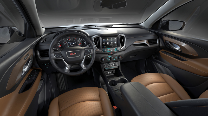Like the exterior, the new Terrain’s interior makes a statement and serves as a fundamental component of the vehicle’s heightened emphasis on refinement and functionality. Elements such as authentic aluminum trim, soft-touch materials on the instrument panel and doors and standard active noise cancellation are premium features seamlessly integrated into the interior design for a luxurious customer experience.