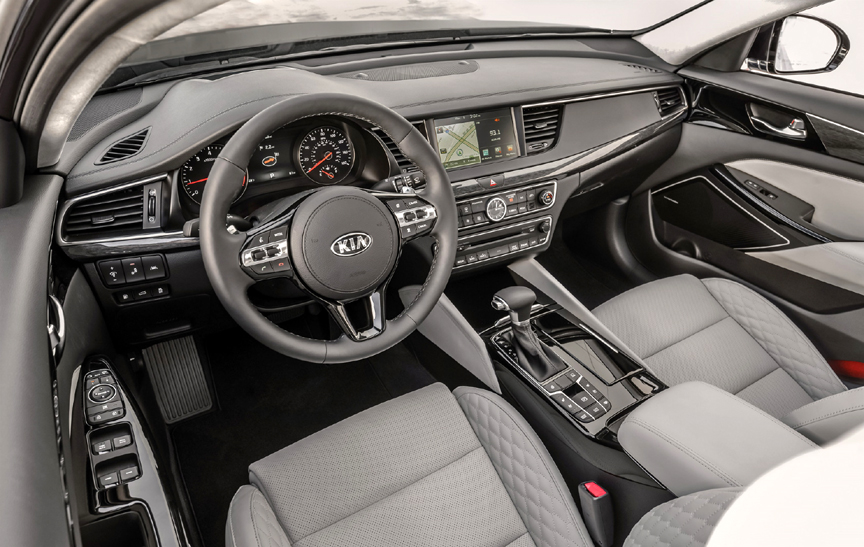 PERFORMANCE: The engine is familiar, Kia’s 3.3-liter V6. It has an aluminum alloy block and heads, dual overhead camshafts with continuously-variable cam phasing for optimum efficiency, and direct fuel injection to allow a high 12:1 compression ratio for further improved efficiency in both (increased) power production and (decreased) fuel consumption. A slight retuning to improve fuel economy decreases horsepower from 293 to 290 (at 6400 rpm) and torque from 255 to 253 lb-ft at 5200 rpm, but with plenty all the way down to just off idle. That’s not a noticeable change. More important is the new eight-speed automatic transmission. It’s lighter in weight than the old six-speed, and aids both acceleration and cruising fuel economy. As is increasing the case, there are multiple transmission modes plus manual shifting via paddles on the steering wheel. I found “Smart” to work the best, perhaps combining the shift program of “Sport” under acceleration with that of “Eco” in steady-state cruising. There was plenty of power, even for short highway onramps into fast downhill traffic. EPA estimates are 20 mpg city, 28 highway, 23 overall. With less highway and lots of non-level ground and highway speeds closer to 75 mph than 50, I saw a 22-mpg average for the week. Which is not bad at all for a nearly two-ton, nearly 300-horsepower luxury car.