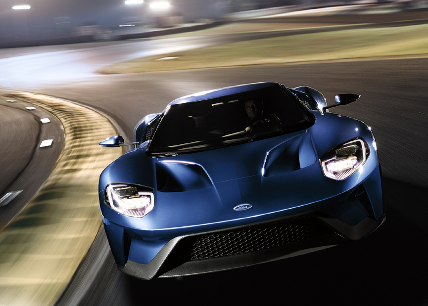 Capable of an exceptional top speed, Ford’s all-new supercar is designed and optimized for track performance to honor its racing heritage. In 2016 development testing, with all contenders track-prepped with new fluids, fresh tires and optimal suspension settings, in identical conditions and with the same driver behind the wheel, Ford GT bested both the McLaren 675LT and Ferrari 458 Speciale at Calabogie Motorsports Park in Canada.