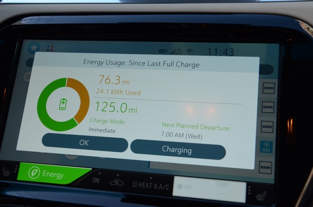 Off we went on our drive. We cranked up some heat to take away the morning chill. We switched on the heated front seats, and by the way the two rear outboard seats are also available heated, and turned on the heated steering wheel. We were cozy and not concerned about using up battery energy.