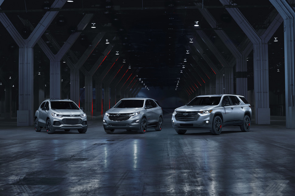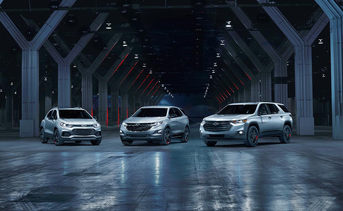 All Redline vehicles are equipped with black wheels featuring distinct red hash marks, black nameplates with a red outline, blacked-out grilles and black Chevrolet bowtie logos.