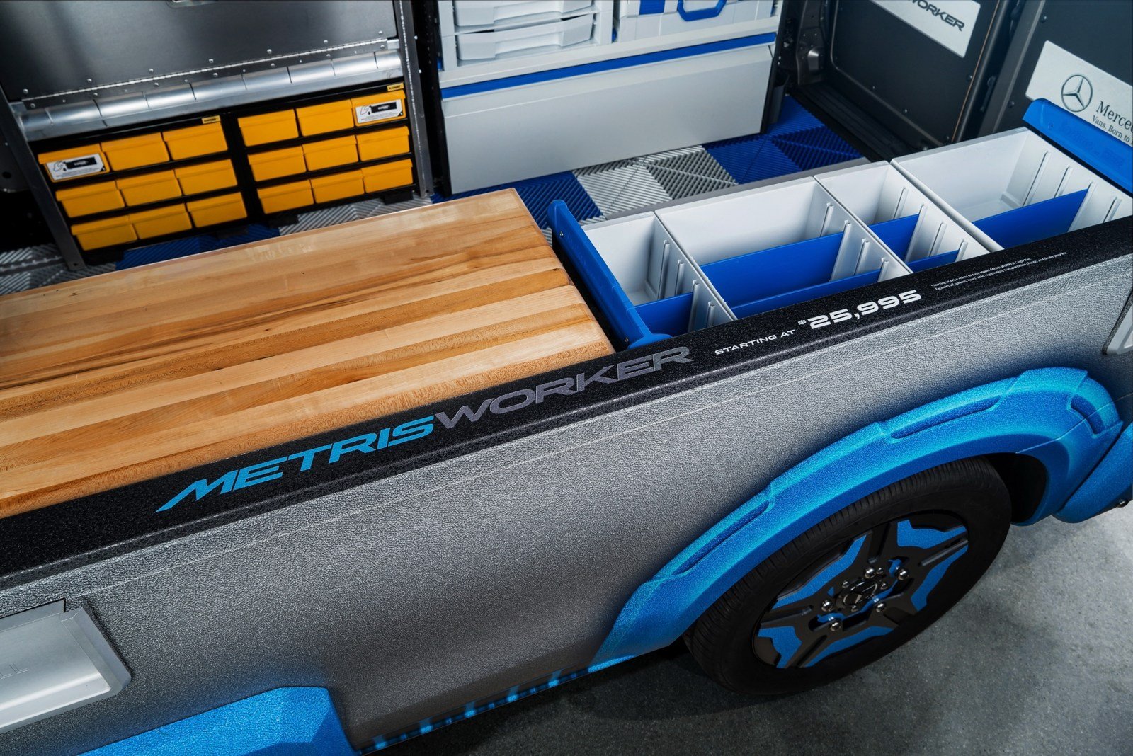 Built by RENNtech, the Metris MasterSolutions Toolbox Van, which is based on the Metris WORKER Cargo Van, has big shoes to fill after the debut of the "Sprinter Extreme" concept van at the 2016 Chicago Auto Show, but this tough, mid-size van is up for the task. Boasting over 2,500 lbs. of payload and 5,000 lbs. of towing capacity, all Mercedes-Benz Metris vans are built to work hard on the job while maintaining the ability to fit into the average garage and achieve exceptional fuel economy.