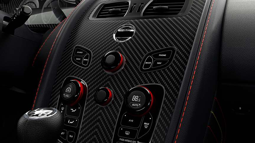 Complementing Aston Martin’s signature paint finish is a race-inspired carbon fibre splitter, diffuser, grille and side strakes. Red infills on the carbon fibre grille and yellow calipers complete the iconic colour scheme.