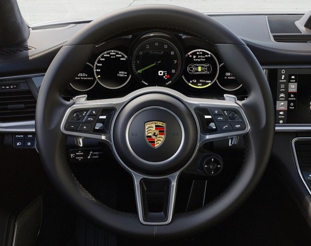 As part of its standard equipment, the Panamera Turbo S E-Hybrid includes the Porsche Ceramic Composite Brake (PCCB), Porsche Dynamic Chassis Control Sport (PDCC Sport) including Porsche Torque Vectoring Plus (PTV Plus), Power Steering Plus and 21-inch alloy wheels in the 911 Turbo Design. The basic package also contains auxiliary air-conditioning, adaptive aerodynamic elements and three-chamber air suspension including Porsche Active Suspension Management (PASM). The long version is equipped with rear axle steering as standard. In Canada, pricing for the 2018 Panamera Turbo S E-Hybrid starts at $209,800; for the 2018 Panamera Turbo S E-Hybrid Executive, prices start at $221,700.