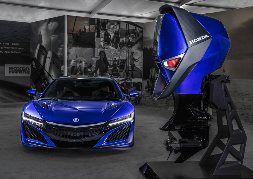 For the Miami reveal, Honda Marine had an Acura NSX on show next to the concept engine, and in the same colour — Nouvelle Blue Pearl — indicating that different colours could be available should the engine go into commercial production.