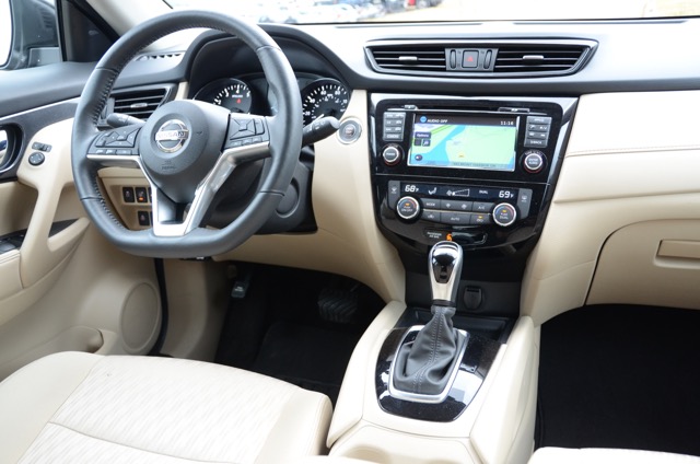 On the inside the Rogue has nice fit and finish and an overall premium feel. There’s a new flat-bottom, D-shaped steering wheel, revised center console and leather-booted sport-mode shifter. Door and instrument panel trim are new as is the shift knob design.