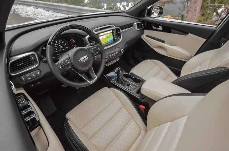 Three engines are available in the Sorento – a 2.4-liter four-cylinder, a 2.0-liter turbo and our test car’s naturally aspirated 3.3-liter V6. All get the same 6-speed automatic transmission. With a good 290 horsepower and 250 pound-feet of torque it feels entirely adequate but not impressive in terms of acceleration on this two-ton vehicle. The EPA estimates we can get 17 mpg in the city 23 on the highway and 19 mpg combined with our all-wheel drive version using regular fuel. Expect a couple clicks better with front-wheel drive. The 18-gallon fuel tank makes for an excellent cruising range. We were able to achieve 23.5 mpg on our back road explorations at relatively moderate speeds.