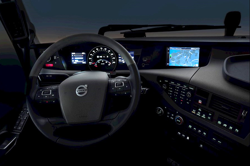 STOCKHOLM - March 22, 2017: By combining the cab's audio and entertainment unit with the navigation and fleet management systems, Volvo Trucks has created one easy-to-use fully integrated system controlled via touch screen, voice command and steering wheel buttons.