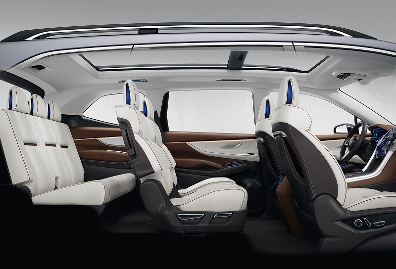 The exterior design of the concept follows Subaru's "Dynamic x Solid" theme with powerful fender flares representing Subaru's all-wheel drive system and a large, bluff grille denoting a true SUV look. The interior of the concept features a flowing dashboard design and a 7-passenger configuration with center captain's chairs.