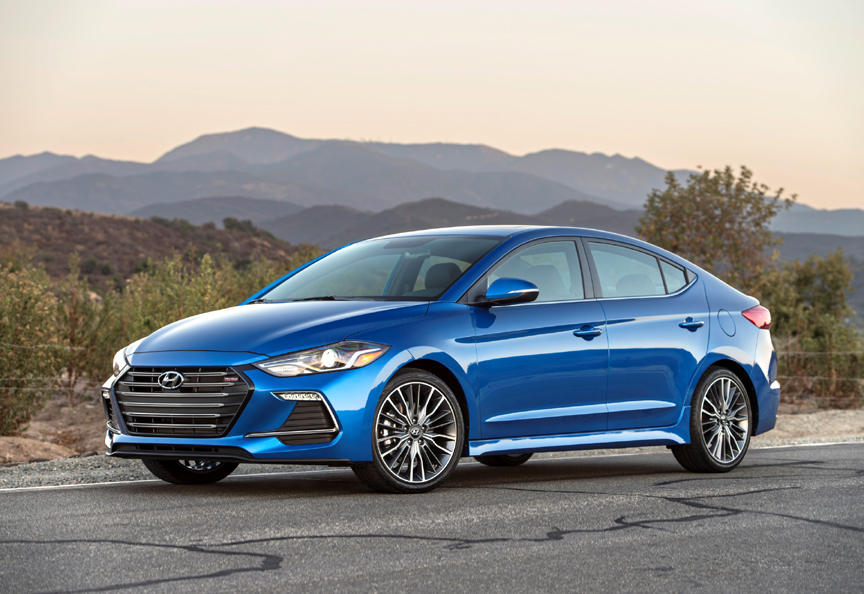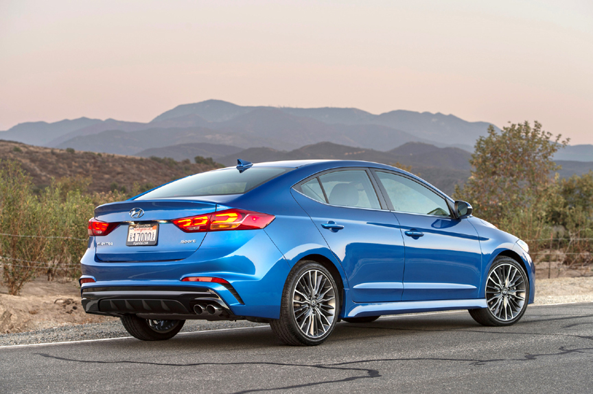 SAFETY: The Hyundai Elantra Sport has front and rear crumple zones and a safety cage around the passenger cabin. Four-wheel antilock disc brakes with brake assist and electronic brake-force distribution ensure quick stopping, and cornering and evasive maneuvering are improved by vehicle stability management and electronic stability control systems. A full complement of airbags, including driver’s knee offer further protection. A rearview camera is standard, as is a tire-pressure monitoring system. Blind-spot detection with rear cross-traffic alert is part of the Premium Package.
