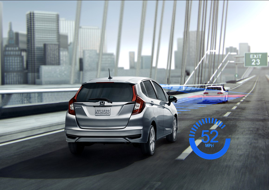 Available on LX and Sport trims and standard on EX and above, Honda Sensing® includes Adaptive Cruise Control (ACC), Collision Mitigation Brake Braking System™ (CMBS™), Lane Keeping Assist System (LKAS) incorporating Lane Departure Warning (LDW) and Road Departure Mitigation (RDM) incorporating Road Departure Warning (RDW). This makes Fit the most affordable car in America with such a robust suite of available advanced safety and driver-assistive technologies and the only vehicle within its segment to do so.