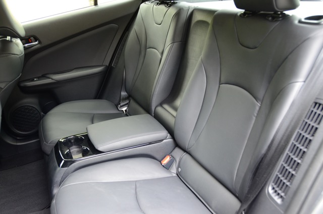 In order to fit in the battery the Prius Prime only seats four. The rear seat is 60/40 split fold-down with a center armrest with cup holders and center console. The rear cargo capacity is 19.8 cuft, but the load floor is quite high over the battery.