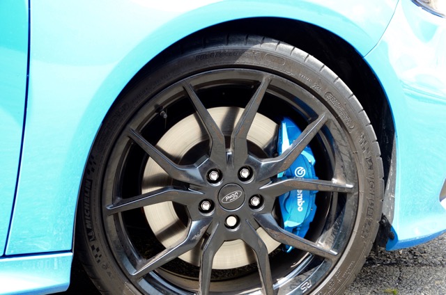 Ford worked with Michelin to develop the unique Michelin Super Sport summer tire for everyday use and, for the first time on Focus RS, an optional Pilot Sport Cup 2 tire for enhanced vehicle dynamics on the track. The RS I drove at RA and the one I drove on the street where two different cars, but both were equipped the same, including the Pilot Sport Cup 2 tires.