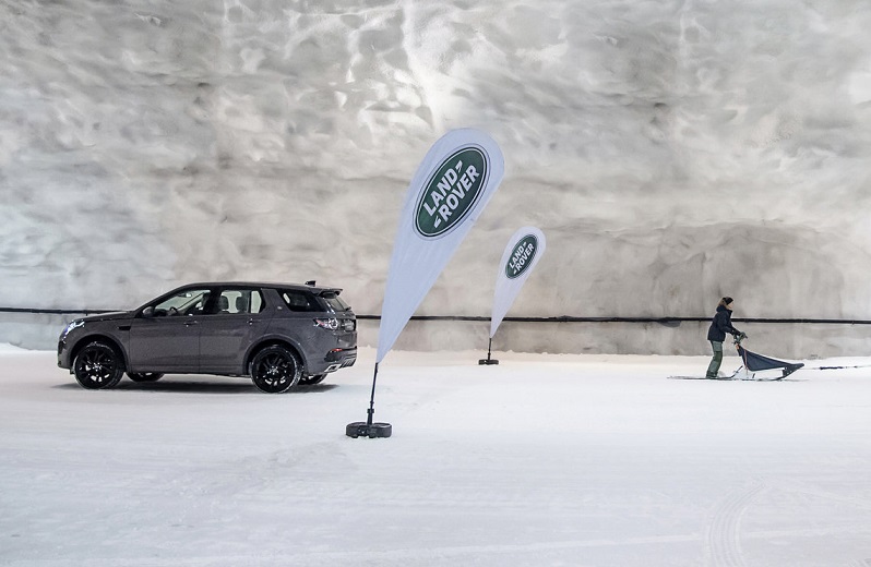The undulating tunnel is carved into the bedrock 115-ft below ground level and kept at constant 28.4°F to maintain a blanket of snow .8-in deep throughout the summer, making it the perfect place to put the Discovery Sport vehicle’s all-terrain capability to the test.