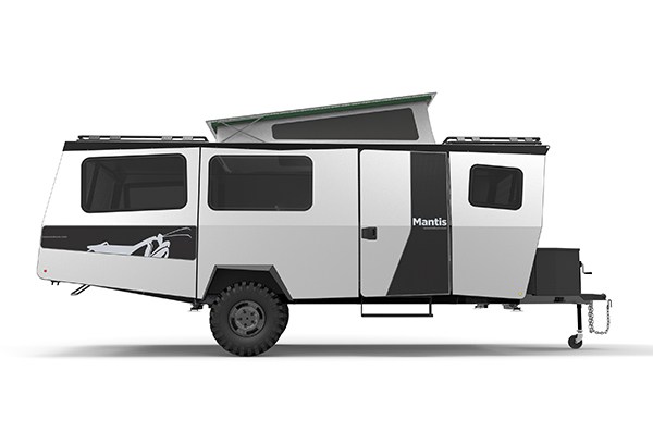 Equipped with electric brakes controlled through a 7-pin connector, the single-axle Mantis has 12-inch ground clearance and an independent suspension system.