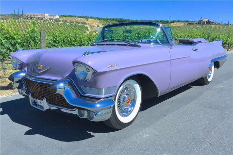 - 1957 Cadillac Eldorado Biarritz Convertible (preview) – With a total production run of just 1,800 vehicles, this Cadillac was meticulously restored to its original form and ultra-rare original Amethyst exterior color