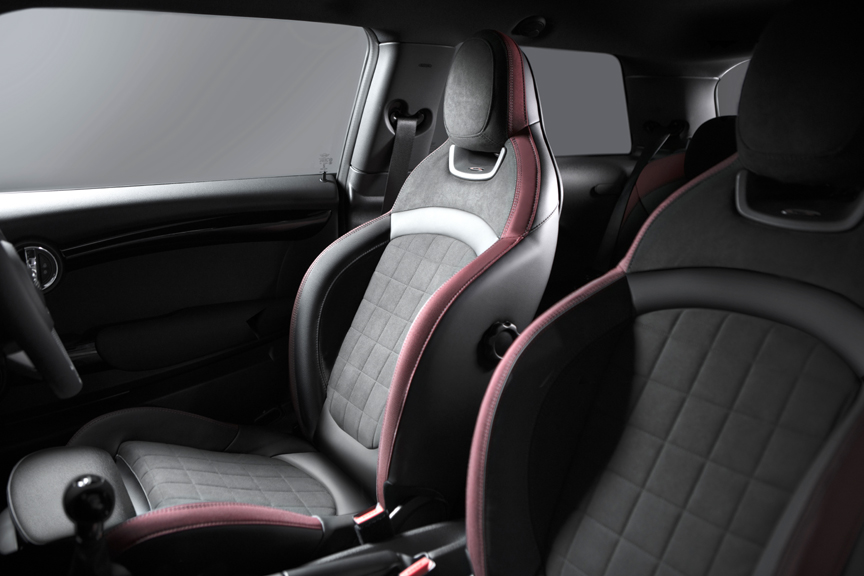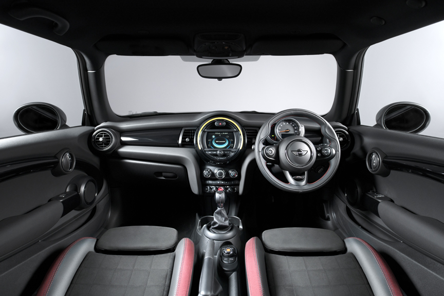 Additional exterior features include the MINI John Cooper Works Sport Pack, featuring 17” Track Spoke alloy wheels in Black, dark tinted windows and white indicator lenses. The styling pack includes distinctive John Cooper Works front and rear bumpers, side skirts, a split level spoiler and John Cooper Works door entry plates.