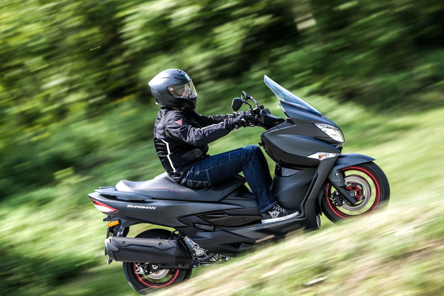 And while a study by the Office for National Statistics might have found that those who commute on two wheels are happier, the bit about the new Burgman 400 most likely to make you smile is its affordability. With an RRP of £6,299, on Suzuki’s Flexible Finance Scheme, and as part of a PCP deal, the Burgman 400 can be enjoyed for just £44.40 per month over three years, with a final repayment of £3,120 and deposit of £2,500. For those who prefer a hire purchase deal, the same deposit means the Burgman 400 can be yours for £121.39 per month, also over three years, with no final repayment.