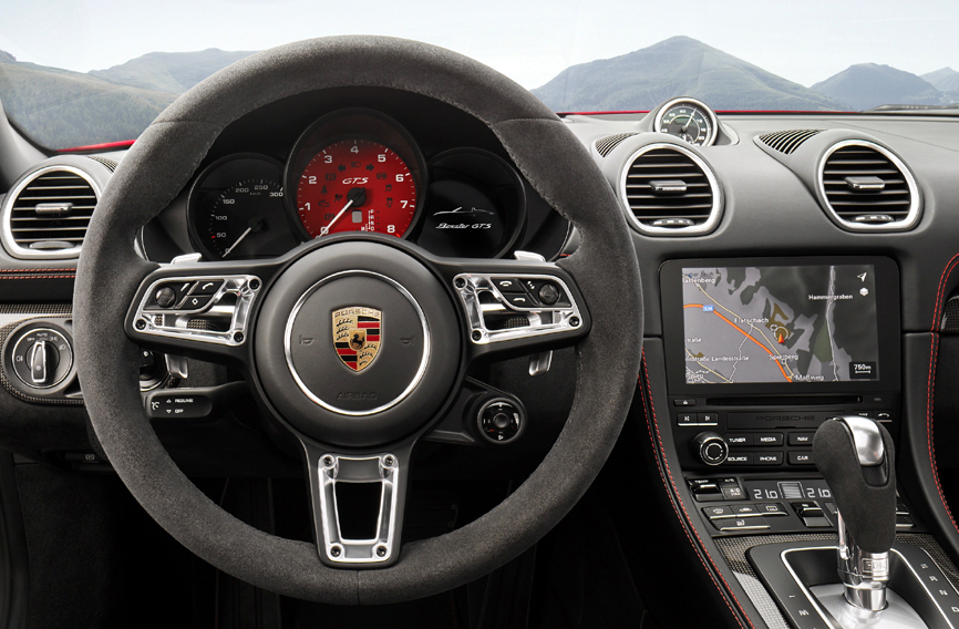 more power than its GTS predecessor models with naturally aspirated engines. The new mid-engine sports cars are available with manual six-speed transmission or optional Porsche Doppelkupplung (PDK). The GTS vehicles