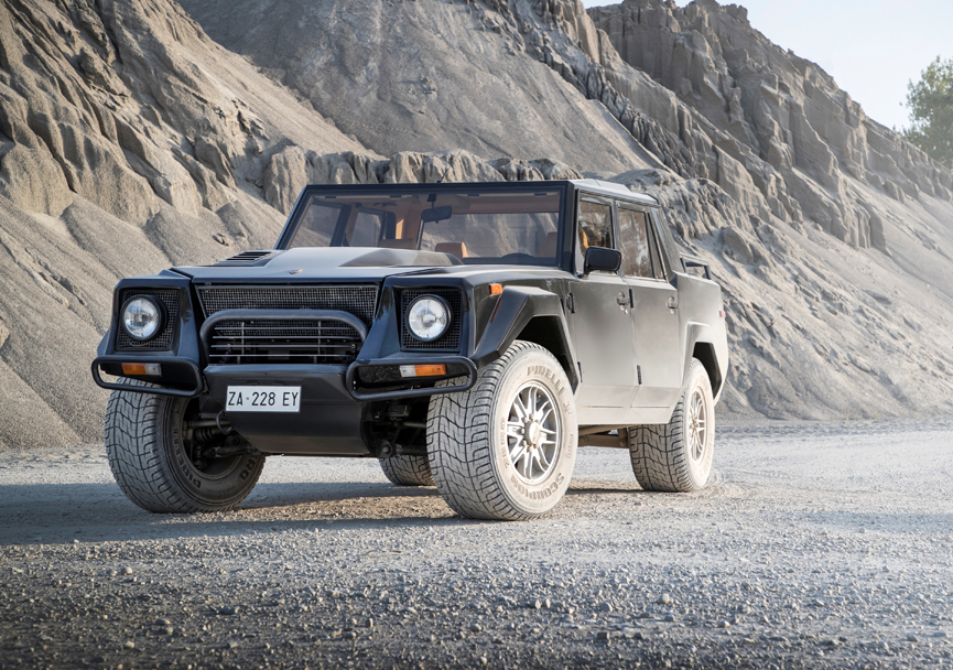 The LM 002’s development started as a project to develop a high performance off-road vehicle for military use at the end of the 1970s, with the name of Cheetah. Lamborghini engineer Giulio Alfieri resurrected the project in 1981 with the LM 001: an innovative concept with a rear-mounted engine, followed by the LMA prototype with a front-mounted powertrain. The final production model of the LM002 was first presented at the Brussels Auto Show in 1986, consolidating the final design: the V12 engine from the Countach Quattrovalvole provided a 5,167 cc capacity and 450 hp at 6,800 rpm.