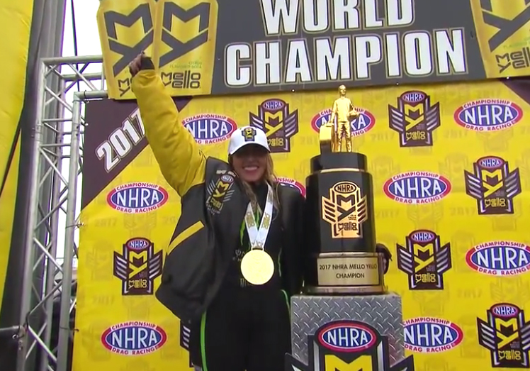 And I can’t take any credit. She had a great coach in Alan Johnson, who took a girl and did what (three-time Top Fuel champion) Shirley Muldowney did 35 years ago. He amazes me. They delivered for Monster a championship,