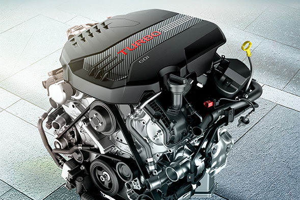 - Kia Stinger features standard AWD and a 3.3L Twin Turbo V6 engine