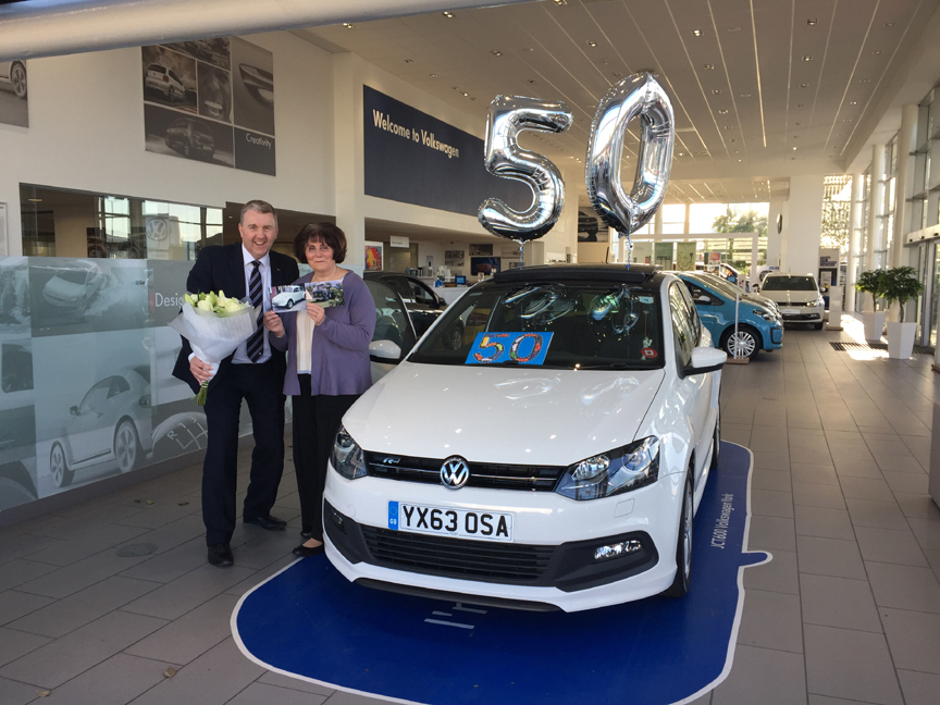 Mrs Wilson’s local Retailer is JCT600 Volkswagen York, where she was recently invited for coffee and cake to begin her half-century celebrations, which also included gifts and a letter of thanks from the Director of Volkswagen Passenger Cars in the UK, Alison Jones.