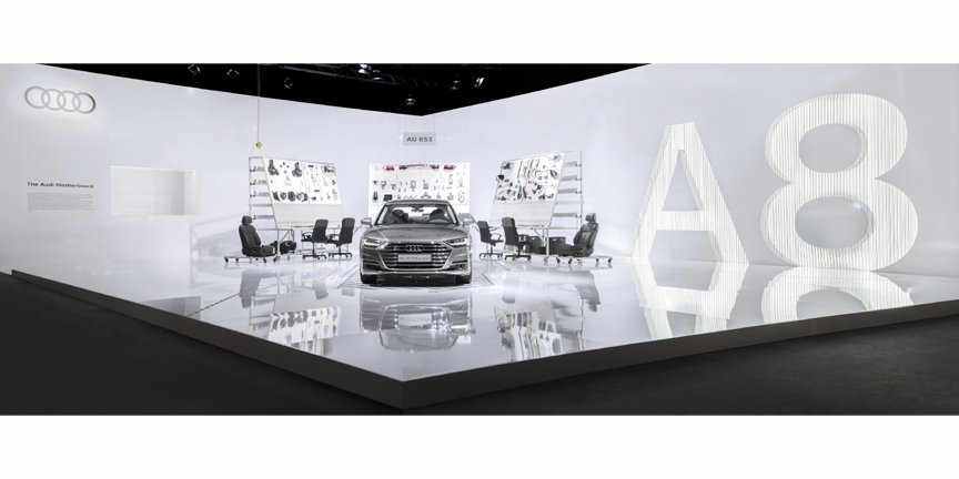 The fourth generation of the Audi A8 serves as the benchmark for Vorsprung durch Technik � with a new design language, an innovative touchscreen operating concept and 48-volt technology as the basis for the electrified drive. “The Audi A8 is the world’s first production automobile developed for highly automated driving. We are demonstrating to our visitors in Miami how the model manages the complex situations in a traffic jam with technology,” said Bernhard Neumann, Head of Experiential Marketing at Audi. “With the help of the installation we make it possible to experience the Audi A8 and the process of its development.”