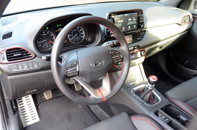 Dynamically the Elantra GT Sport is fun to drive. The turbo comes on nicely and the 201-HP and 195 lb-ft of torque push you down the road quickly. Zero to 60 mph is in around 6.6 seconds, by my rough estimate. The six-speed manual is easy to shift vey crisply with well-defined gates and comfortable clutch action. I thought the suspension tuning crisp and firm enough with good compliance and roll control. The tires grip well, although with their low profile I needed to be careful for the ever-present potholes and the road resurfacing work with sharp transitions at shaved-off surface junctures.